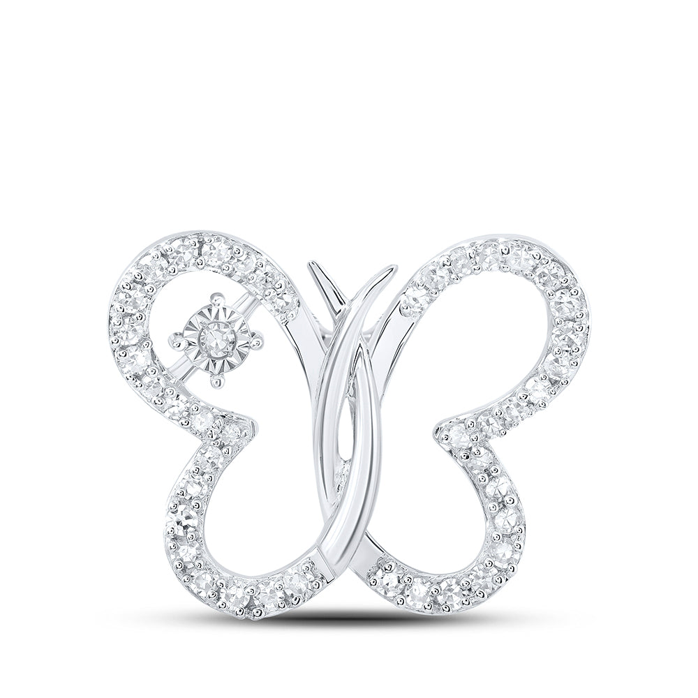 Lady's White 10 Karat butterfly Pendant 0.15tw Round Diamonds